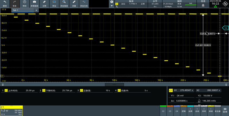 測試波形:從USmin通過tfall ≤10ms下降到-4V,保持60s后通過trise ≤10ms回到USmin,保持120s,完成一次循環(huán)