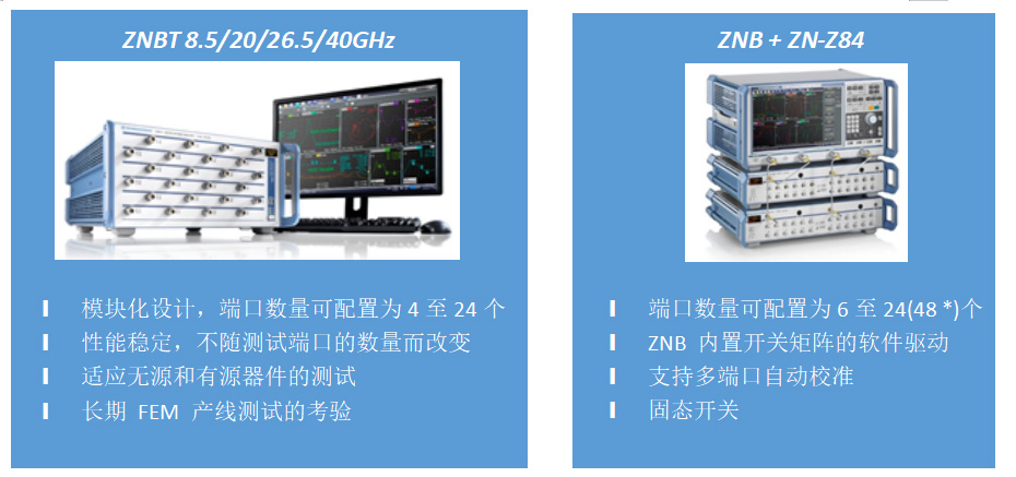 圖4 R&S ZNBT以及R&S ZNB + ZN-Z84是兩款專門針對(duì)射頻前端多端口器件的測試方案