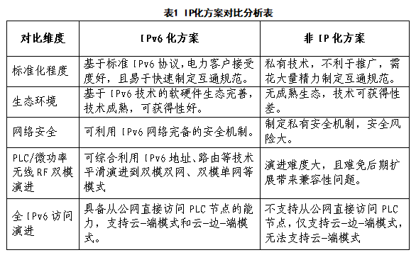 IPv6短距物聯(lián)網(wǎng)絡技術較成熟,數(shù)據(jù)通信和網(wǎng)絡安全等都可以使用標準的國際協(xié)議實現(xiàn),軟件生態(tài)、可擴展性、互聯(lián)互通性等都更好。在配用電臺區(qū)采用IPv6協(xié)議棧與非IP化方案優(yōu)勢對比如下表: