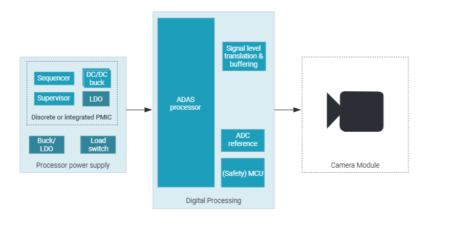為了執(zhí)行視覺預(yù)處理、深度和運(yùn)動(dòng)加速或 AI 網(wǎng)絡(luò)處理等處理任務(wù)以支持 ADAS 功能,系統(tǒng)中的片上系統(tǒng) (SoC) 需要高效的電源。在設(shè)計(jì) ADAS 前置攝像頭時(shí),面臨以下四大電源挑戰(zhàn)。