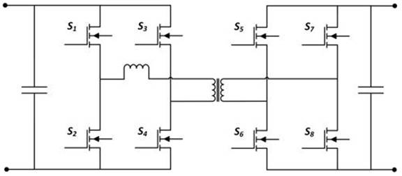 雙有源橋變換器(DAB)由初級(jí)全橋、變壓器漏感、次級(jí)全橋和濾波電容組成,如圖6所?。DAB變換器不需要串聯(lián)電容和電感等額外的諧振元件,?是使?變壓器漏感和功率開(kāi)關(guān)的輸出電容來(lái)實(shí)現(xiàn)軟開(kāi)關(guān)。與諧振變換器不同,DAB變換器對(duì)元件變化不太敏感。寬禁帶半導(dǎo)體的出現(xiàn)促進(jìn)了DAB變換器在雙向功率流應(yīng)用中的普及。