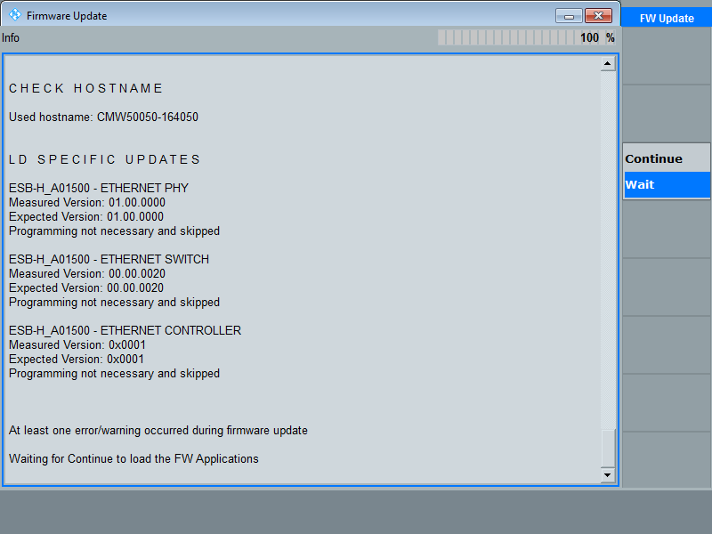 b.) CMWC, CMW500啟動(dòng)過程中有些板卡沒有識(shí)別出來,出現(xiàn)紅色warning提示,如圖6所示。這時(shí)需要關(guān)掉CMWC,單獨(dú)打開每臺(tái)CMW500做自檢,看看是哪臺(tái)CMW500出現(xiàn)問題,如果重刷fireware問題還存在,則需要聯(lián)系R&S技術(shù)服務(wù)人員。